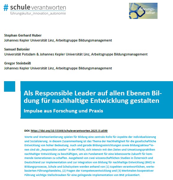 Als Responsible Leader auf allen Ebenen Bildung für nachhaltige Entwicklung gestalten Impulse aus Forschung und Praxis Huber, S.G., Balonier, S. & Steinbeiß, G. 2025